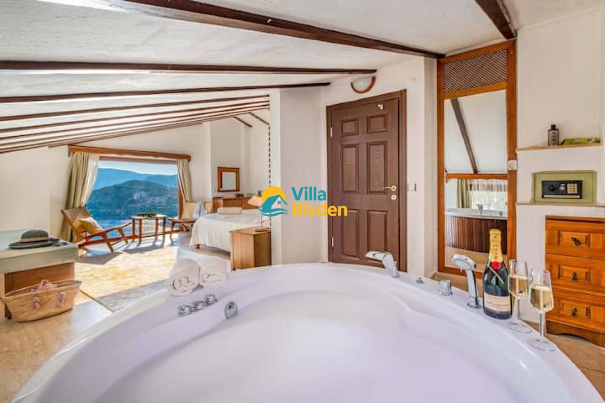 Rahatlatıcı ve konforlu 400 m2 genişliğinde bir villada mola verin ve iyi manzaranın tadını çıkarın. Villa büyük bir bahçe ve evdeki herkes için bolca alanla çevrilidir. Üstünüzde başka bir ev yok ve çoğunlukla yıl boyunca boş olan sadece bir komşu villa var. Bir tepenin üzerinde yer alan Kalkan Şehir Merkezi yürüyerek veya arabayla sadece 1 km, deniz ise sadece 100 metre uzaklıktadır (kuş bakışı).